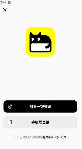 1、打开下载好的app,使用手机号或者抖音账号进行注册登入;