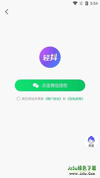 1、下载安装本站提供的轻抖app,进入软件之后需要使用微信授权登录;