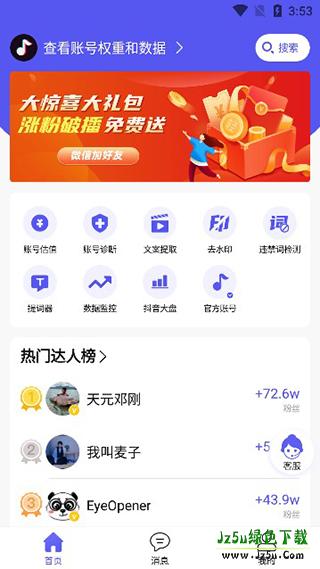 支持数据监控、文案提取、去水印、账号诊断等多个功能服务,可帮助用户更好地创作及管理短视频。