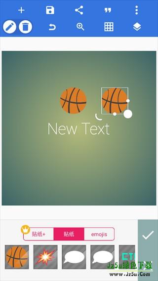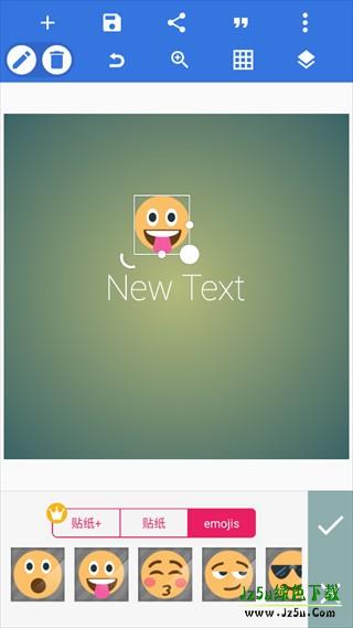 3、点击【emojis表情】,选择您想要加入的表情,放置合适的位置,点√号保存,显得更有趣。