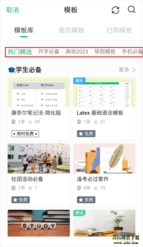 7、另外软件内还提供了大量的模板可以选择,包括了开学必备、手机必备等类型;