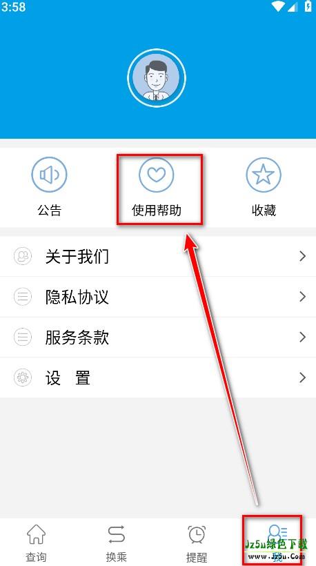 1、打开通卡出行公交车,点击右下角我,再点击使用帮助。