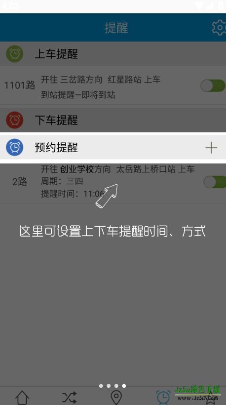 5、点击预约提醒可以设置上下车提醒时间和方式。