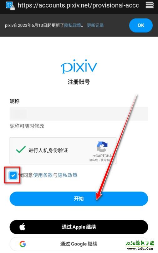 3、先勾选我同意使用条款与隐私政策,再点击开始。