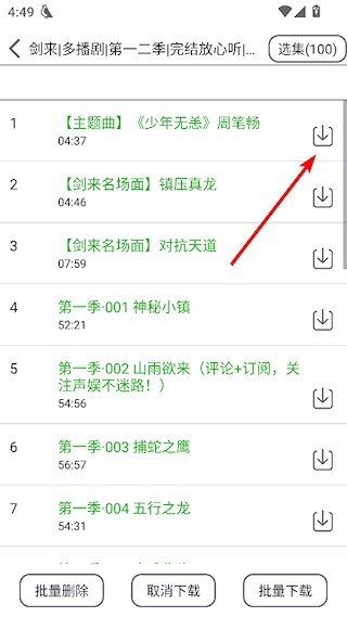 2、选择需要下载的章节即可下载,可以点击下方的“批量下载”下载多个章节;