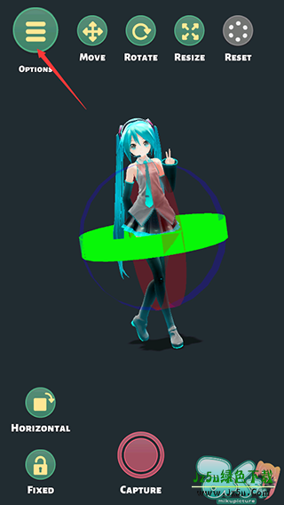 1、打开mikuture,点击右上角【Options】选择选项,