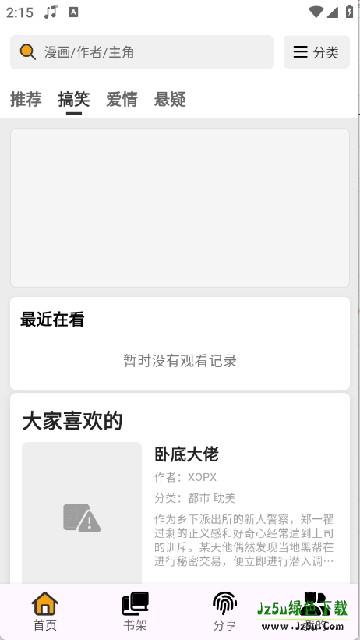3、进入【分类】页面,漫画按题材精细划分,如玄幻、冒险、穿越、恋爱、悬疑、校园等,便于快速锁定感兴趣的内容。