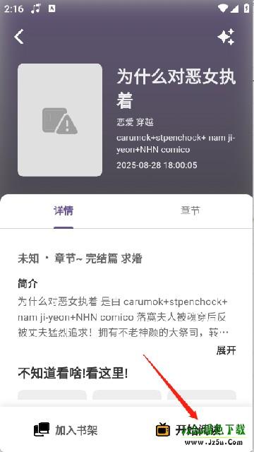 5、点击心仪的漫画进入详情页,查看简介、章节列表与用户评价,确认后点击【开始阅读】按钮。