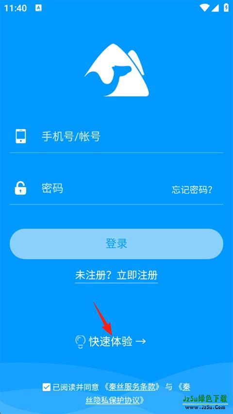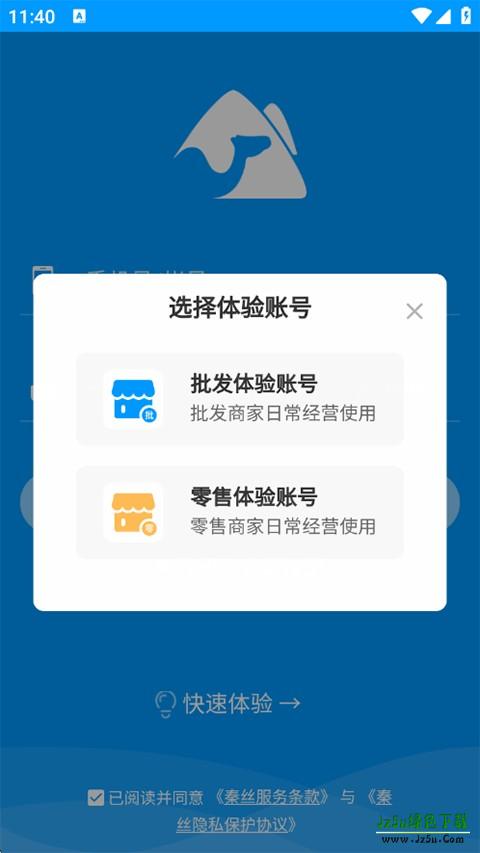 1、打开秦丝进销存APP,输入手机号进行注册,也可以先点击下方的快速体验。