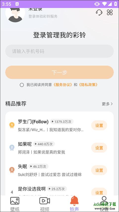 5、设置彩铃是需要手机号登录哦,没有找到喜好的彩铃还可以自定义搜索。