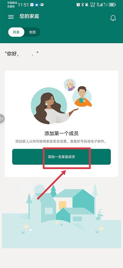 1、进入软件后,首先在你的家庭界面,点击添加一名家庭成员