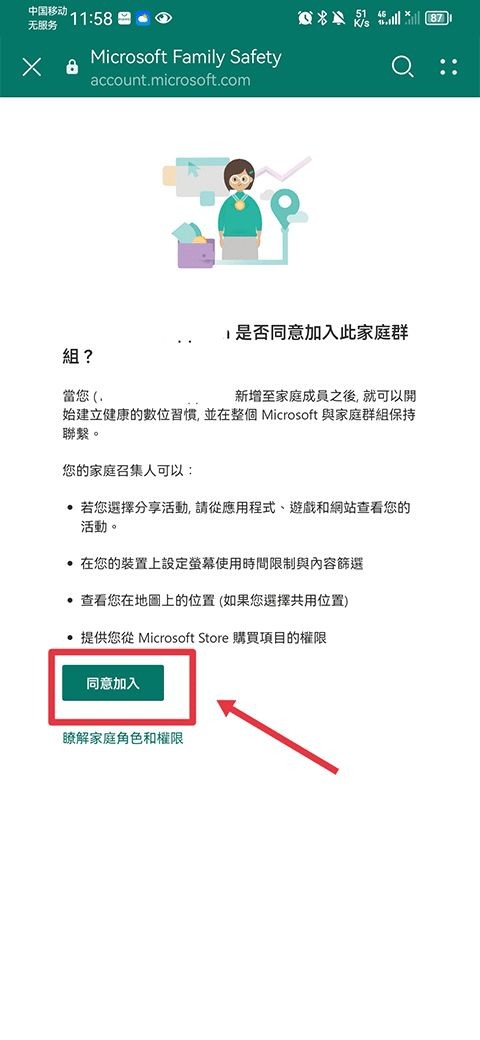 5、最后在此设备上完成账号登录并点击同意按钮即可成功加入家庭