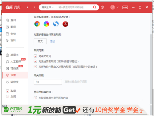 点击有道翻译设置-软件设置-取词设置-勾选OCR强力取词即可