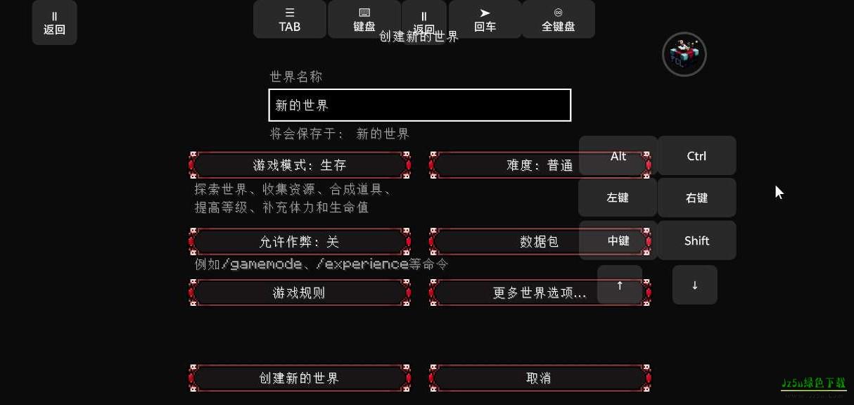7、在根据自己的游戏需求进行设置,然后点击创建新的世界;