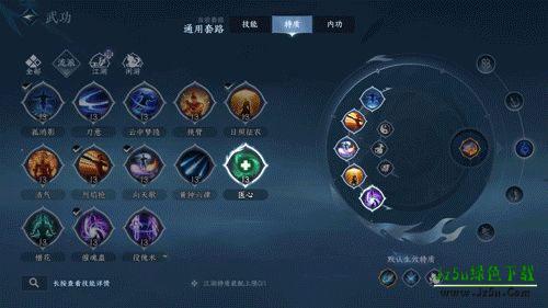 将各个流派的当家招式勤加练习后,就可将流派之间的武学招式【融会贯通】,将可以解锁流派对应的特质。与需要主动释放的流派技能不同,流派特质可被动生效,在背后默默为你保驾护航。时机一到,还有可能升级为精通特质,威力更是无穷。