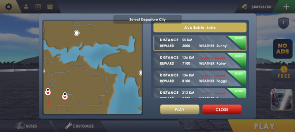 9、完成任务后,还会获取一定数量的货币,可用来购买解锁新的巴士,获得更好的游戏体验。