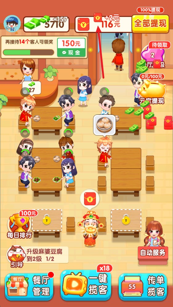 2、不断收集金币,可以达成里程牌成就,餐厅的利润收益将会翻倍增长哦