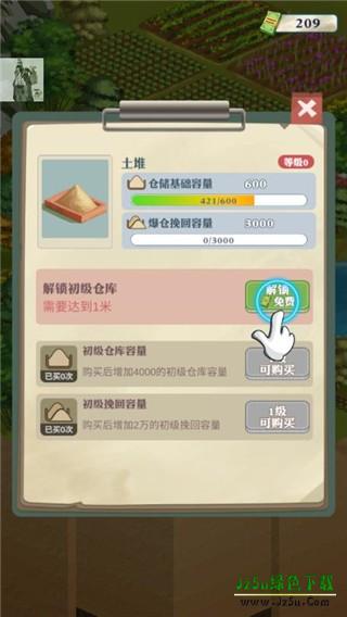 4、解锁你的初级仓库,可容纳更多沙土容量;