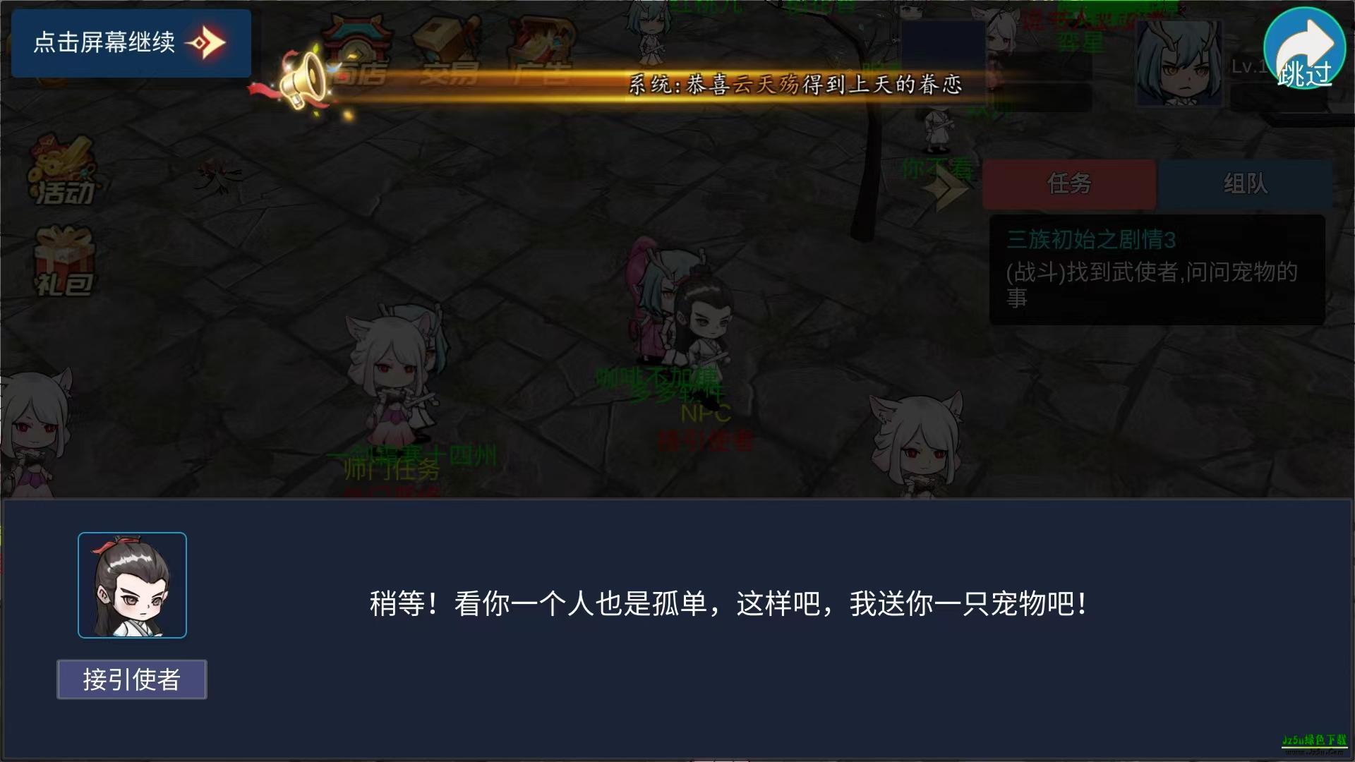 4、任务一般以剧情对话形式,我们点击屏幕即可继续,