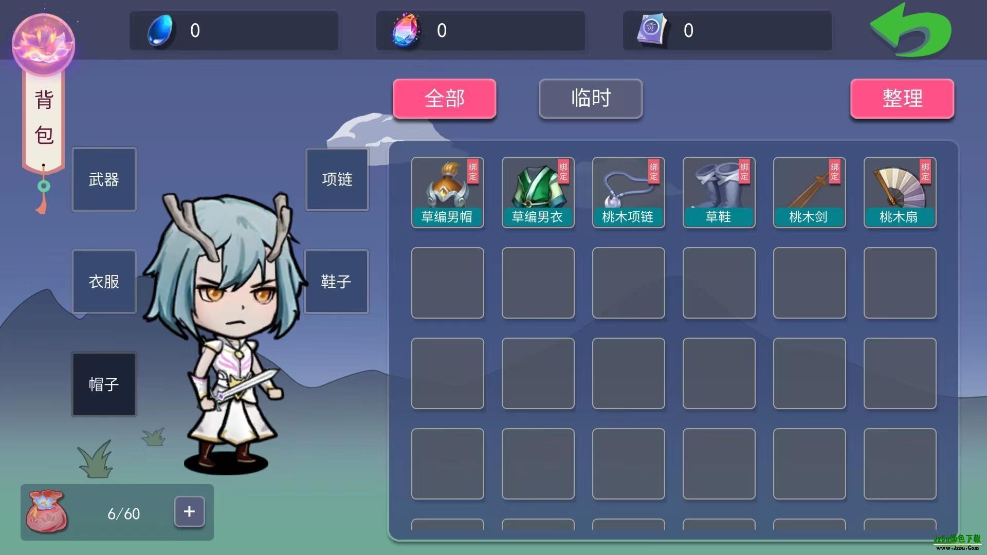 8、在背包界面在,我们可以整理和查看自己的装备,