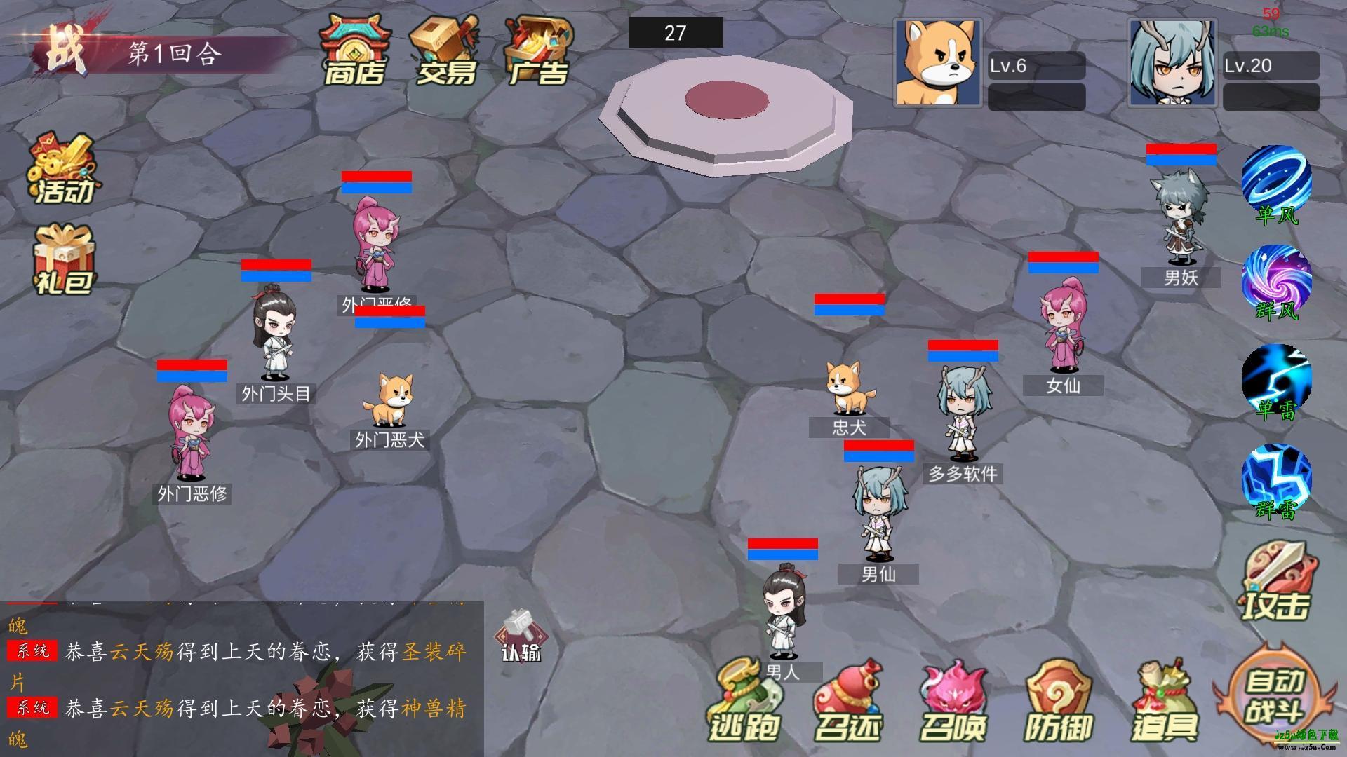 6、进入对战界面,我们可以选择普通攻击和技能攻击,不同的技能有不同的特性,