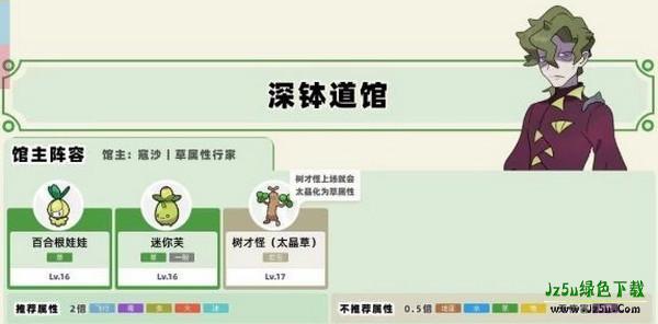 深钵镇草馆主蔻沙,也是三只,大将是17级的树才怪,不要用电系的布拨去打哦~还是用飞行和火系技能随便打。
