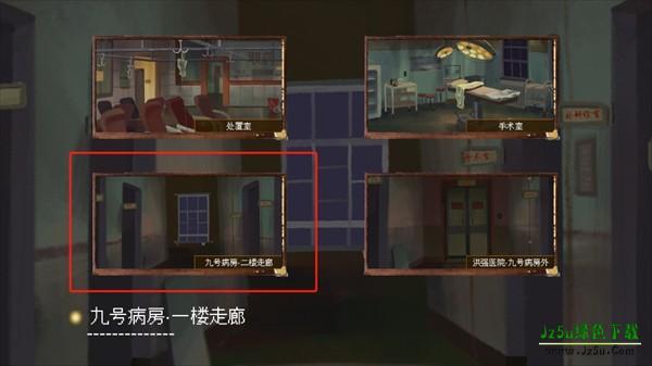 3、进入一楼走廊,可以看到一楼的治疗室、手术室、走廊和9号病房外面。我们选择去二楼走廊。