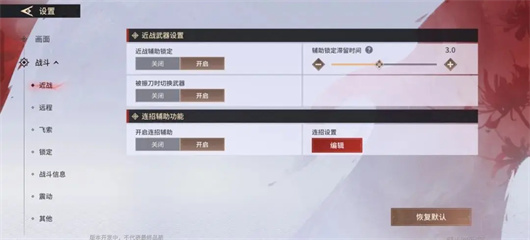 1、首先在游戏中点击【设置】-【战斗】-【连招设置】