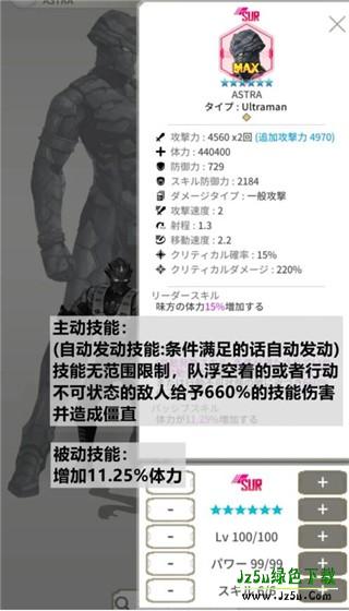 主动技能:自动发动技能条件满足的话自动发动)技能无范围限制,队浮空着的或者行动不可状态的敌人给予660%的技能伤害并造成僵直