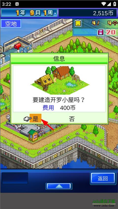 3、确认建造开罗小屋,焦躁需要花费400币,点击是即可开始扩建。