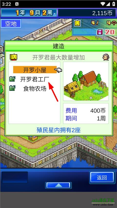 2、打开建造页面,用户可选择扩建开罗小屋(要工厂和农场等类型);
