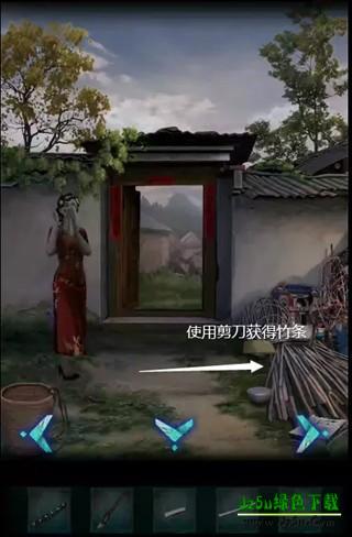 6、暗门内有一个钟,将获得的玉镯递给钟下面的手,得知他还要一把小刀,再出暗门,环境产生变化。