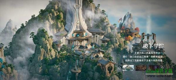 依山而建的稷下学院,以高耸入云的通天塔为视觉中心,云雾缭绕的山石间错落着飞檐翘角的中式楼阁,墙面云纹与流光机关交织,尽显 “自己告诉自己真理” 的治学气度。